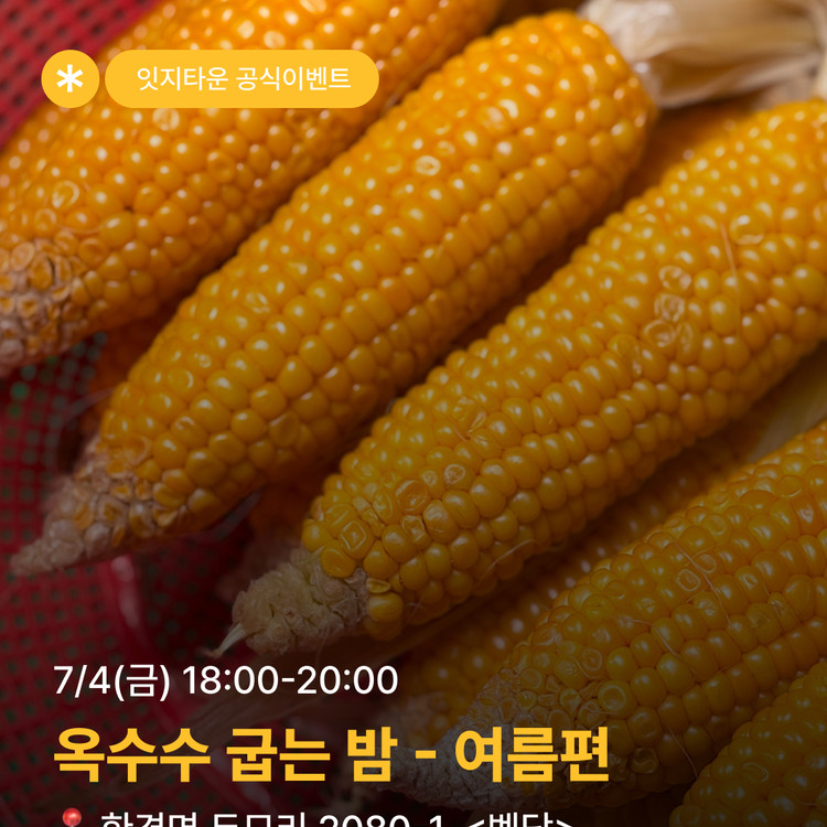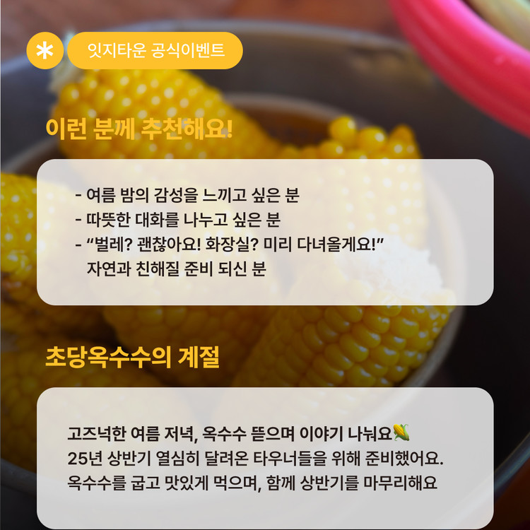 잇지타운 공식이벤트 🌽[옥수수 굽는 밤 - 여름편]