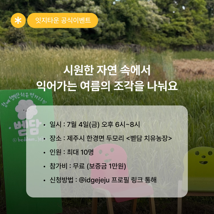 📍 장소: 한경면 두모리 2080-1, 벧담 (야외)