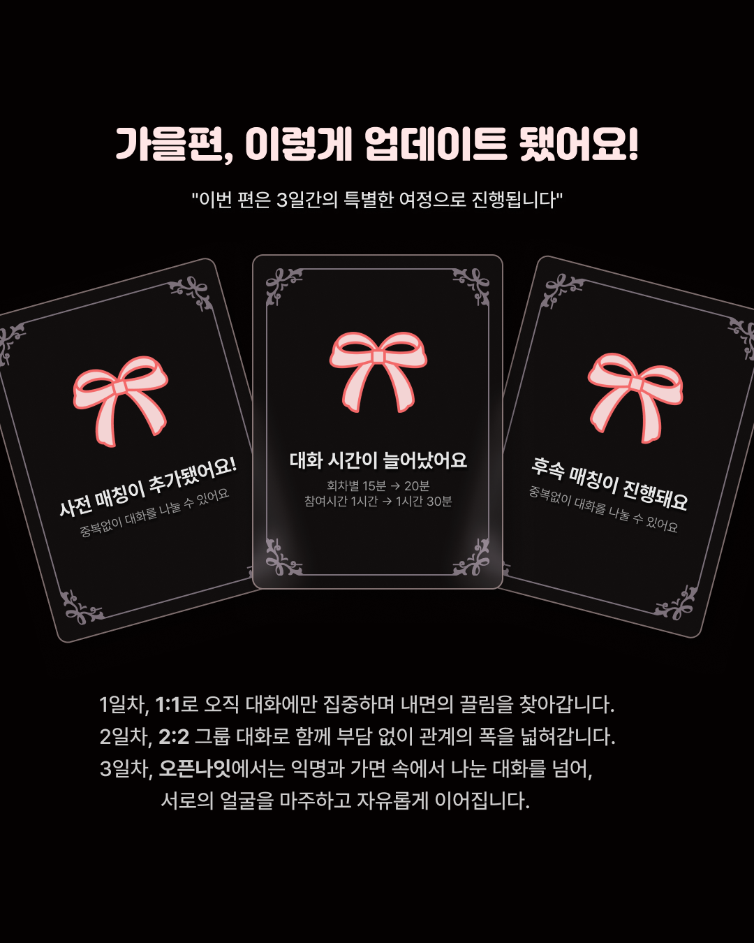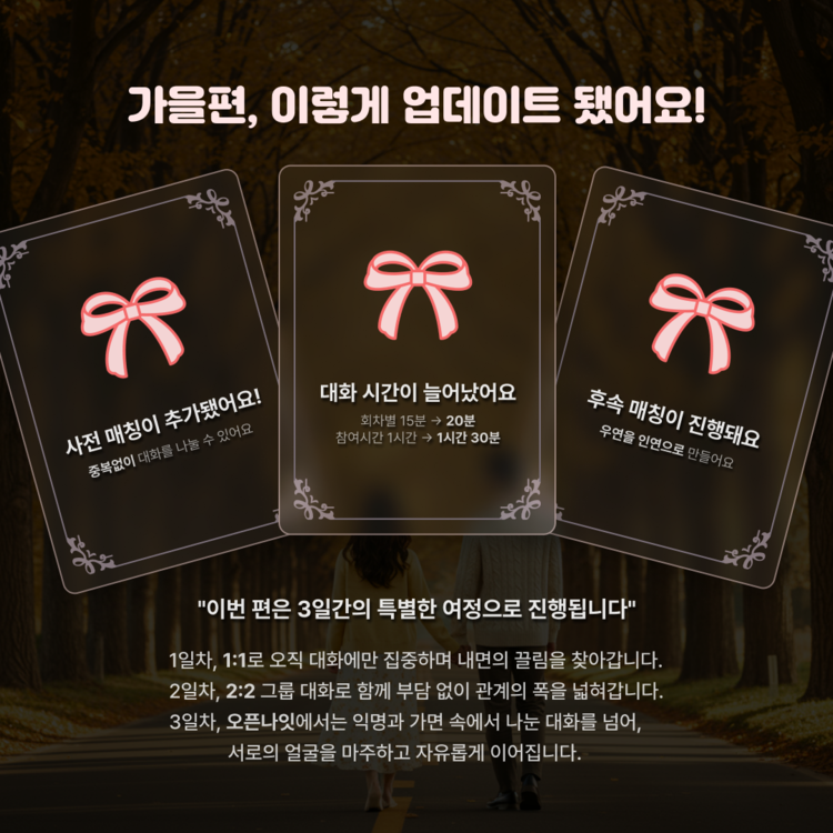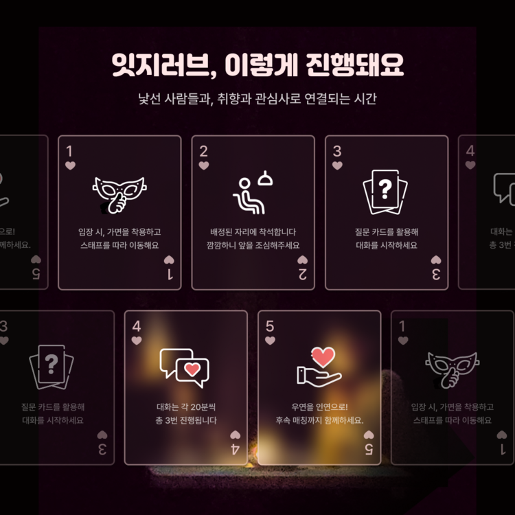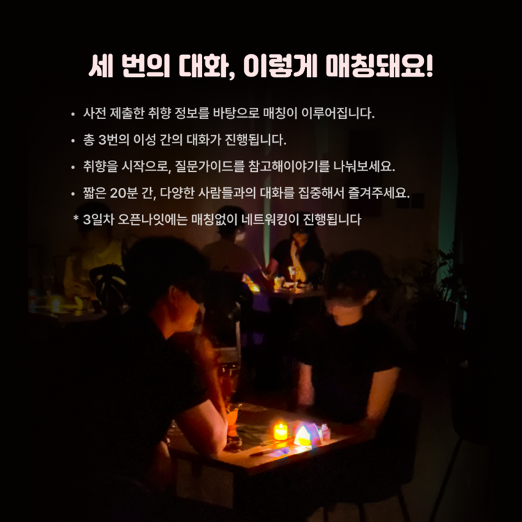 ์ ์ฅ ์, ์ ํํ๋ '์ทจํฅ์นด๋'๋ฅผ ๊ธฐ๋ฐ์ผ๋ก ๋งค์นญ์ด ์งํ๋ฉ๋๋ค.