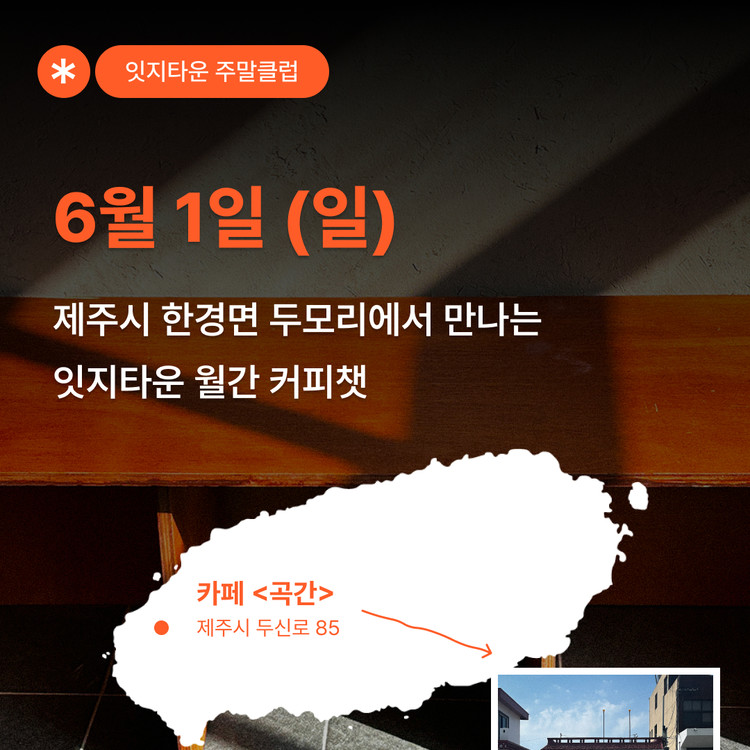 이번 커피챗은 제주시 한경면 두모리에 위치한 카페 <곡간>에서 진행합니다.